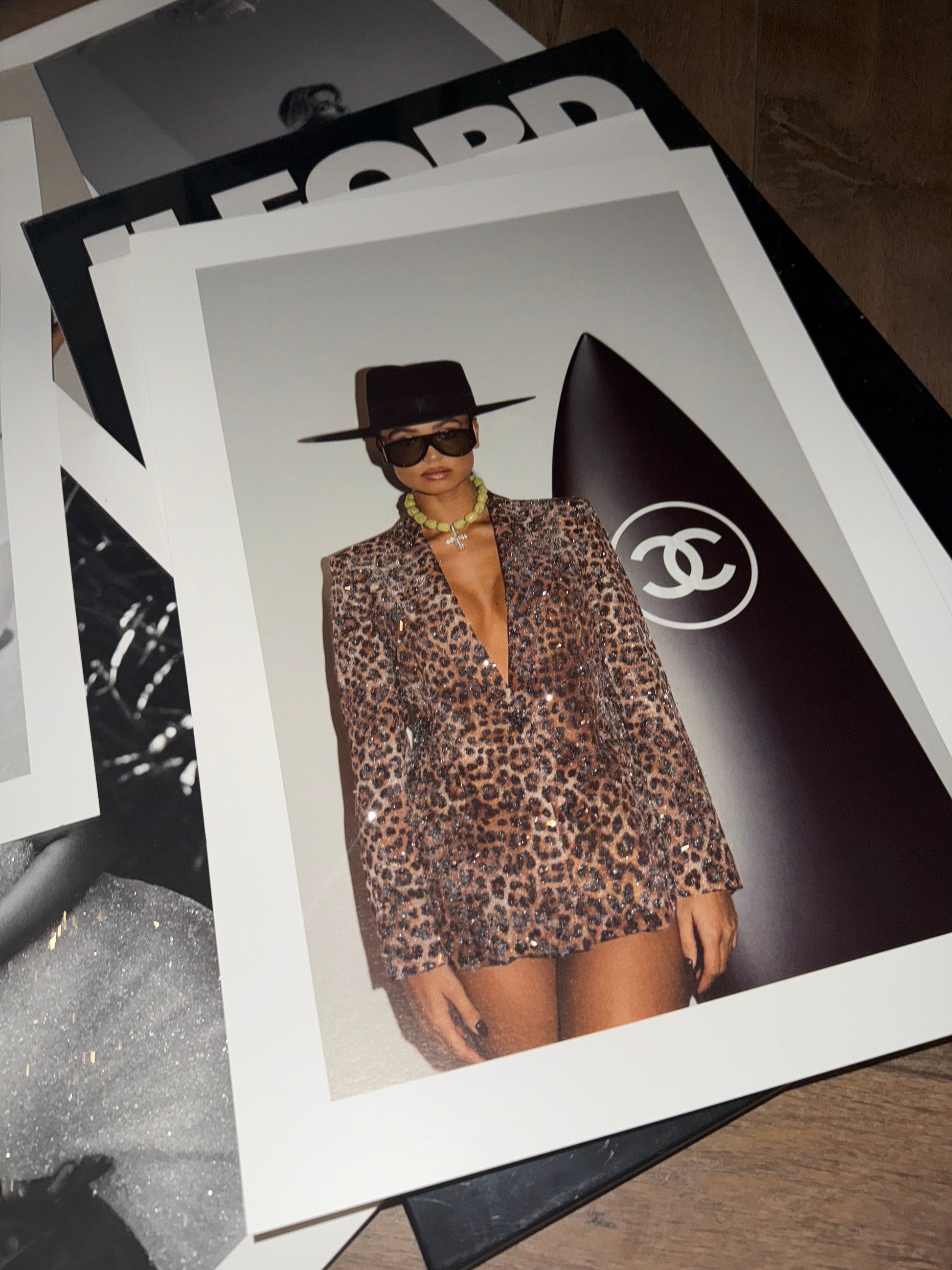 Fine Art print op 310 grams papier, met de hand afgewerkt met fonkelende kristallen.