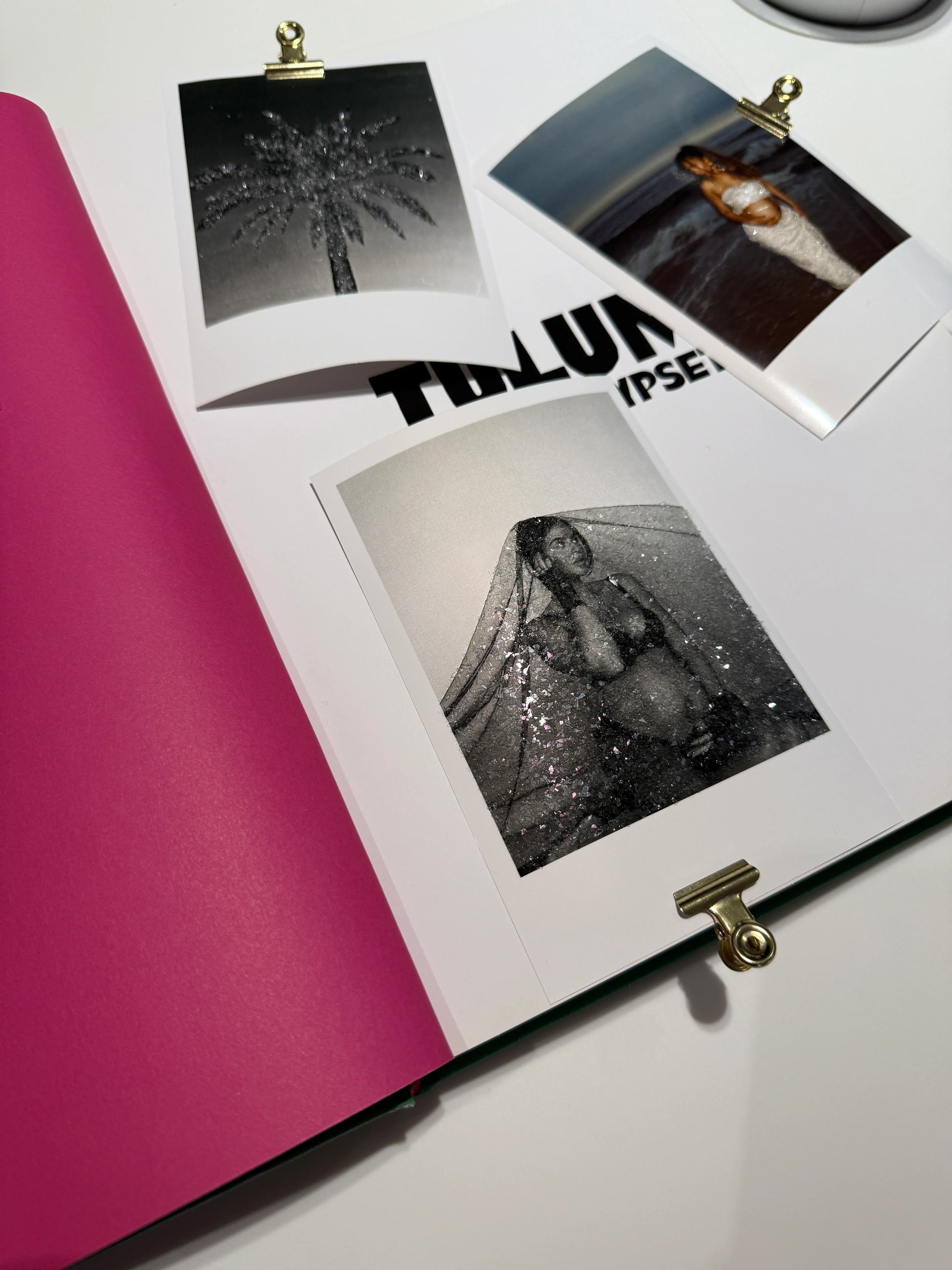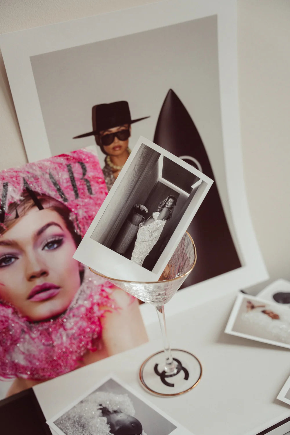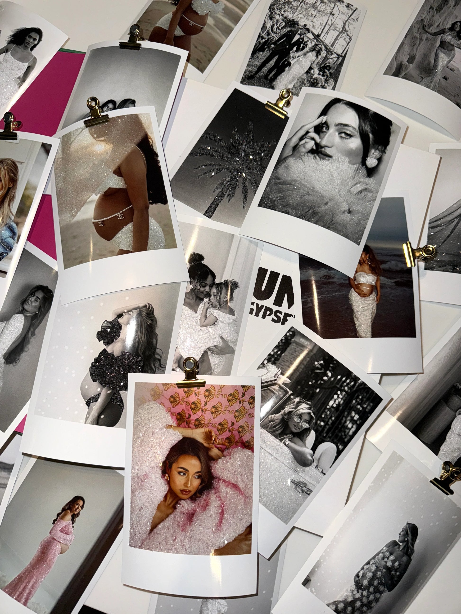 Een glossy "polaroid" print (10x15 cm) op glossy papier, met de hand voorzien van echte fijne glitteraccenten.
